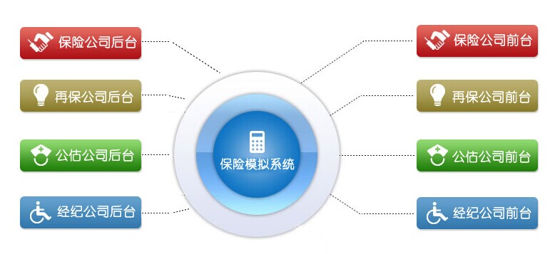 财产保险实训教学考评软件产品在模拟财产保险全险种、全流程业务处理的基础上,根据当今最新的教学需求,融合最新学校教学要求,结合保险市场实际情况,真实模拟了财产保险公司、保险公估公司、保险经纪公司、再保险公司等角色。从保险推广环节开始,全面操练保险核心业务中的投保、承保、核保、变更、理赔、核赔、再保险、保险公估等流程