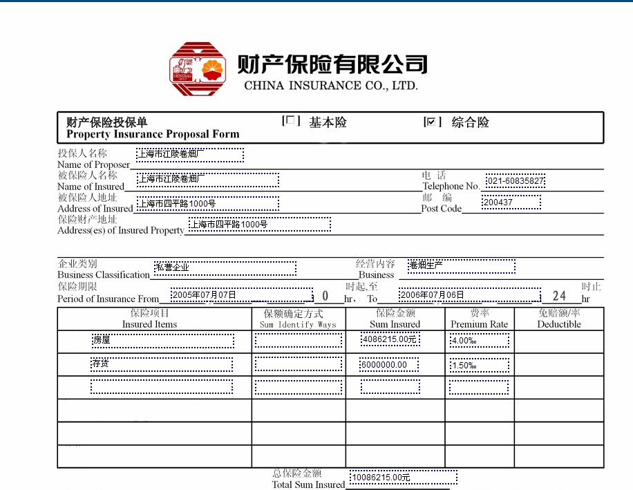 企业财产险 家庭财产险 工程险 水险国内货物运输险 水险进出口货物险